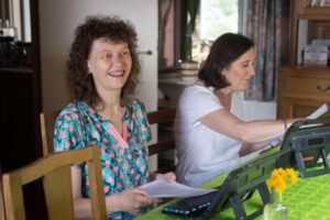 Het was ook hun spraakcomputer die Christine en Nicole samenbracht. Want hoewel ze op een paar kilometer van elkaar wonen, kenden ze elkaar niet voordat ze ALS kregen. “We volgden beiden revalidatie in de MS-kliniek in Pelt en daar ben ik Christine tegengekomen”, zegt Nicole. “Christine wou wat uitleg over de spraakcomputer en ik wou haar graag helpen. Het klikte meteen.”