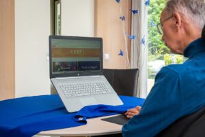 Om mijn missie kracht bij te zetten, heb ik twee boeken geschreven en samen met enkele enthousiastelingen een online magazine gelanceerd, genaamd LEEF met ALS. We denken vanuit de patiënt, het is luchtiger, meer entertainend maar ook super informatief. We werken samen met zo’n 140 experts uit Amerika, maar in Nederland mogen we best nog wat meer voet aan de grond krijgen. Gelukkig hebben we een goed contact met ALS Stichting Nederland. Ik typ het magazine zelf, in de trippelstoel aan de eettafel, met een nekkraag om. De muis bedien ik met het toetsenbord. Ik moet daarbij wel in de gaten gehouden worden, want als ik vermoeid raak kan ik voorover vallen. Rianne zet me dus op tijd in een andere stoel om te rusten.